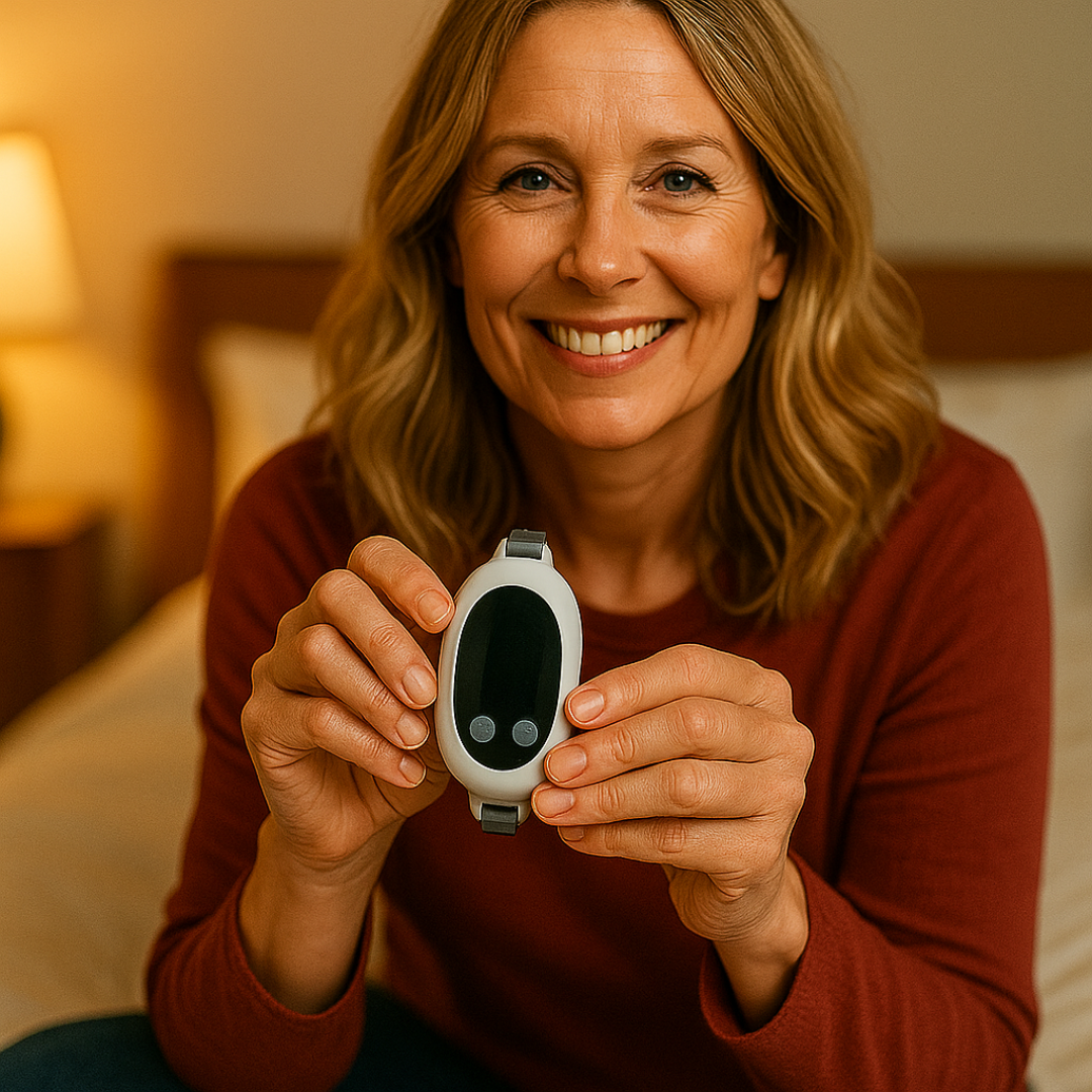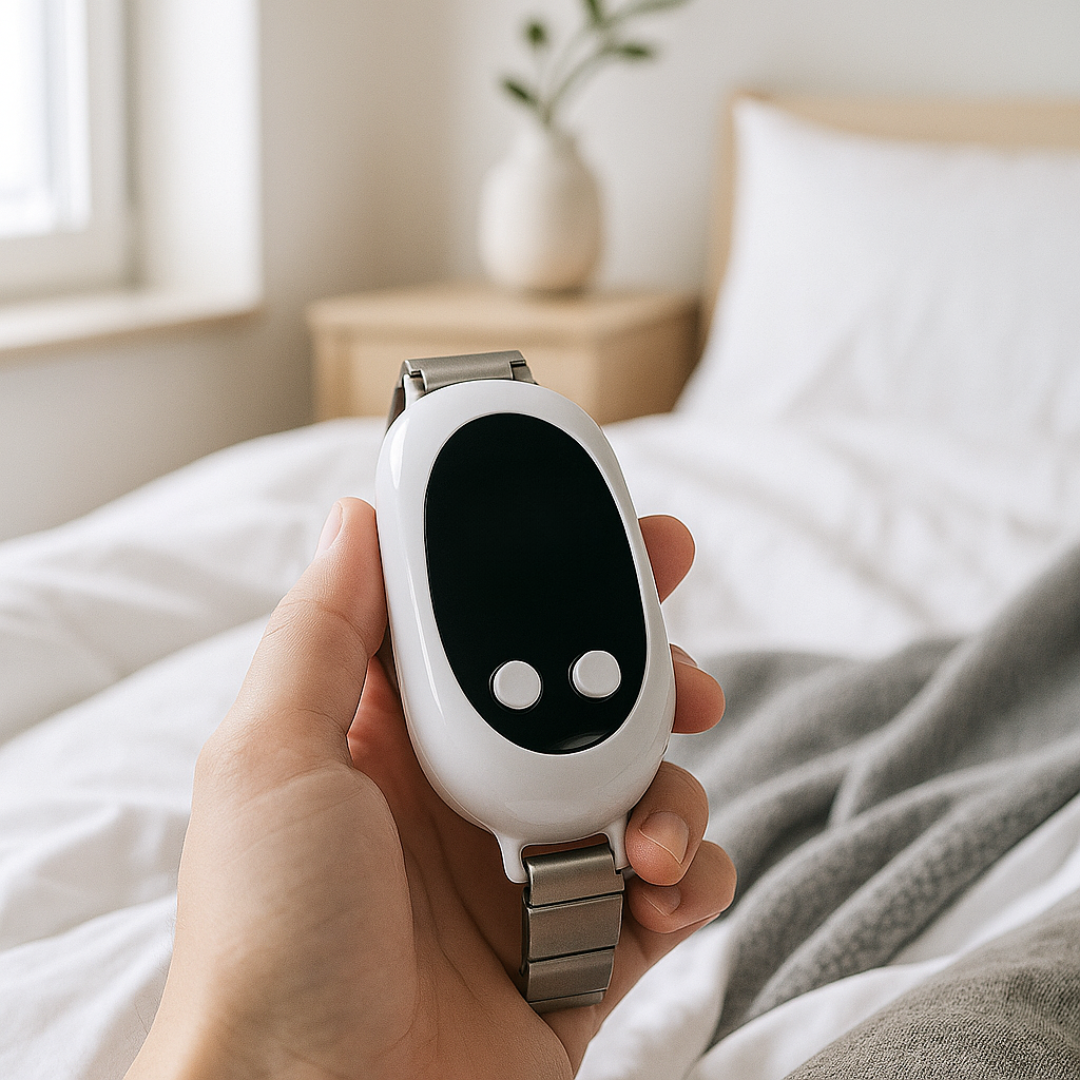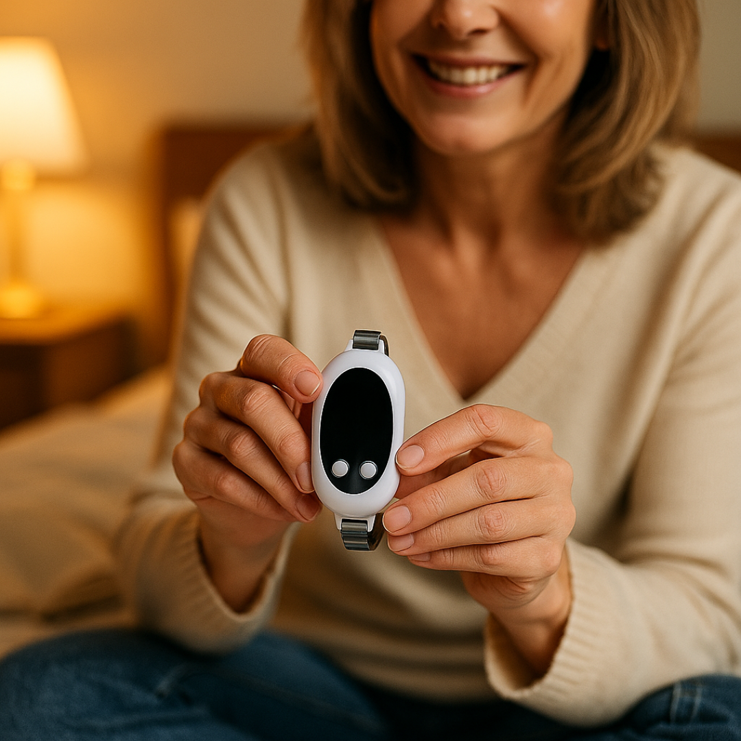 Absolutely! It looks exactly like a fitness tracker but delivers panic relief with just two discrete taps. No one knows you're using anxiety support - perfect for school events, meetings, or anywhere your VagusZen isn't accessible.